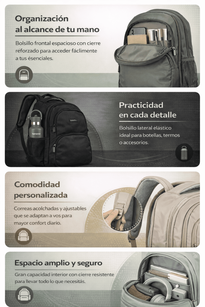Una mochila versátil, cómoda y resistente, pensada para acompañarte todos los días.